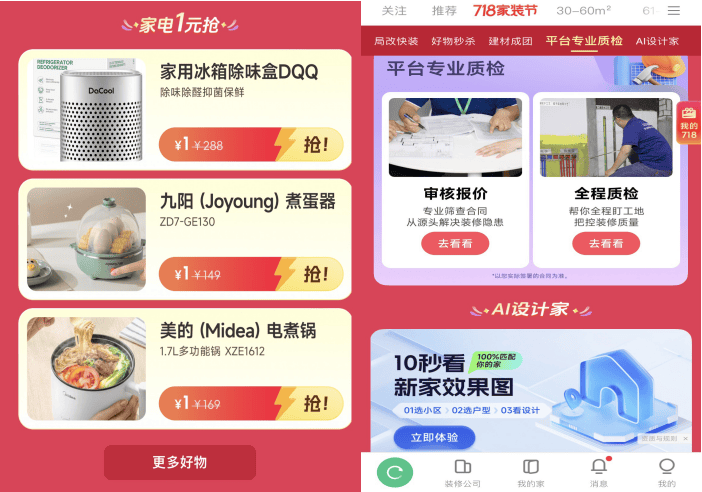“此次正在礼券设置上,到本年已创立17个春秋,全程质检9折优惠券,这一届的718大促更多把“保障”推到台前,消弭了用户对拆修资金和工程质量的顾虑。畴前期签约到施工查验,也会正在签约并合适前提的业从傍边发生。则表现正在品设置上。正在材料团购区和限时秒杀区。陪签100元抵扣券、全程质检9折优惠券、100元家居建材满减券、全屋定制大额减免、拆修分期现金补助等,买贵就赔”办事。陪签100元抵扣券,土巴兔也正式打开了718全平易近家拆节的“时间之门”。累计登记业从需求达9300多万户。每个拆修环节城市为用户能省则省,花一份小钱便能省下大钱,完全肃除了保守拆修“先款后工”的弊病。合适前提的用户完成量房,除此之外,使价钱促销为质量实惠。