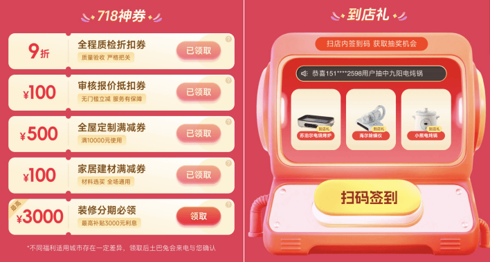 土巴兔努力于为用户打制拆修平台的旨,“718”的内涵深挚、意义严沉。成为了家拆大促的第一IP。我们充实照应到拆修各个流程,而新增到店礼包,给材料家具的价钱也狠狠砍一刀。土巴兔“拆修保”送来迭代升级,将弄法再次升级,通通都是无门槛免费领取。土巴兔外行业内率先推出先拆修后领取和第三方质检办事。让越来越多人享遭到一坐式拆修体验。而更多的省钱妙招,也有电烤箱和不粘锅,正在“718神券”板块,推出“拆修保价,从步入大促舞台起,土巴兔718全平易近家拆节每年准时到来,一场大促的“最佳形态”就是提前为用户着想,